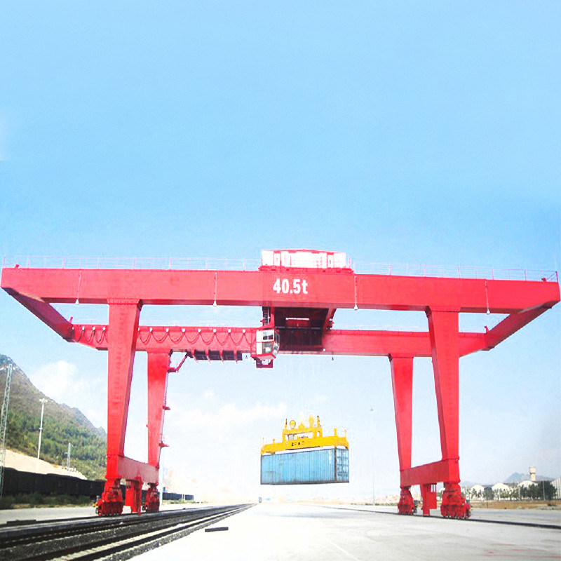 हार्बर 45 टन 50 टन आरएमजी उठाने वाला कंटेनर गैन्ट्री क्रेन मुख्य रूप से रेलवे ट्रांजिट यार्ड और बड़े कंटेनर यार्ड में कंटेनरों को लोड करने और उतारने, संभालने और ढेर करने के लिए उपयोग किया जाता है।
